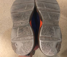 兩條腿的長短不一,鞋底的磨損情況不對稱
